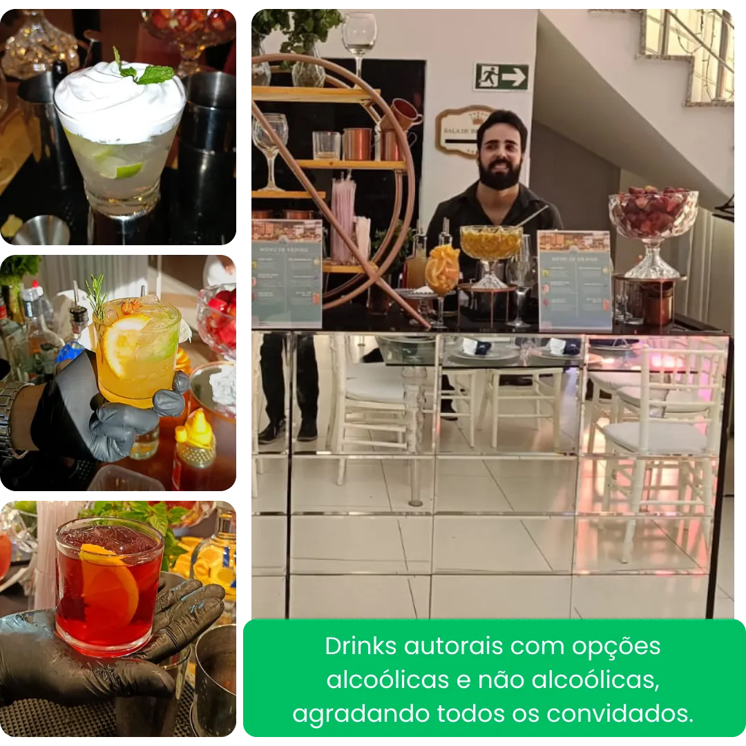 Seja uma confraternização ou celebração especial, oferecemos uma experiência completa com drinks personalizados, estrutura de qualidade e um serviço que transforma qualquer evento em algo memorável.
